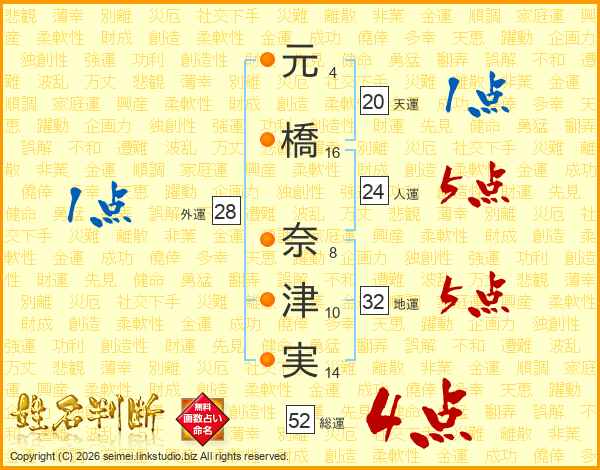 元橋奈津実さんの総運は52画の4点!