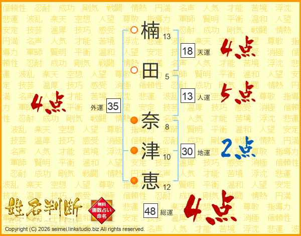 楠田奈津恵さんの総運は48画の4点!