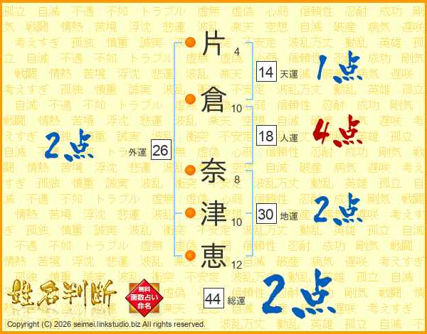片倉奈津恵さんの総運は44画の2点!