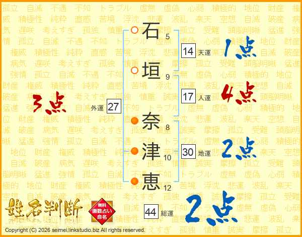 石垣奈津恵さんの総運は44画の2点!