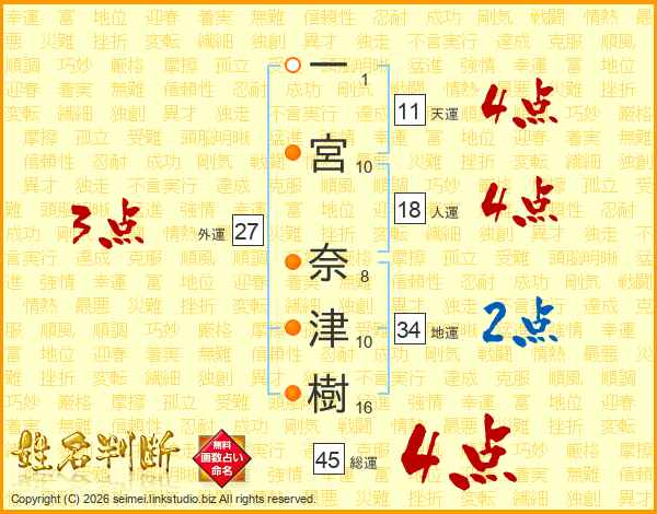 一宮奈津樹さんの総運は45画の4点!