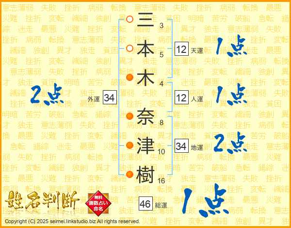 三本木奈津樹さんの地運は34画の2点!