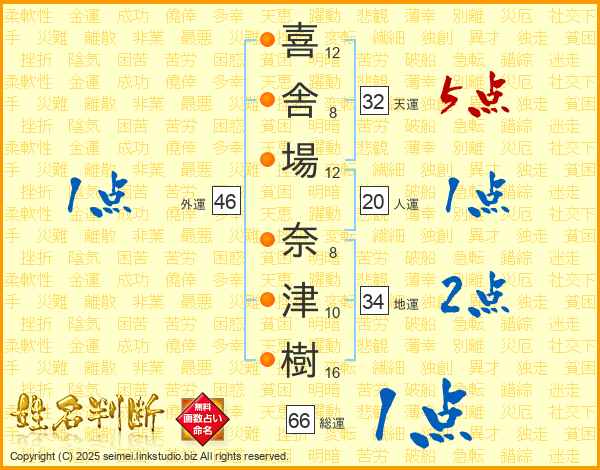 喜舎場奈津樹さんの総運は66画の1点!