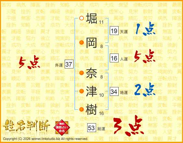 堀岡奈津樹さんの外運は37画の5点!