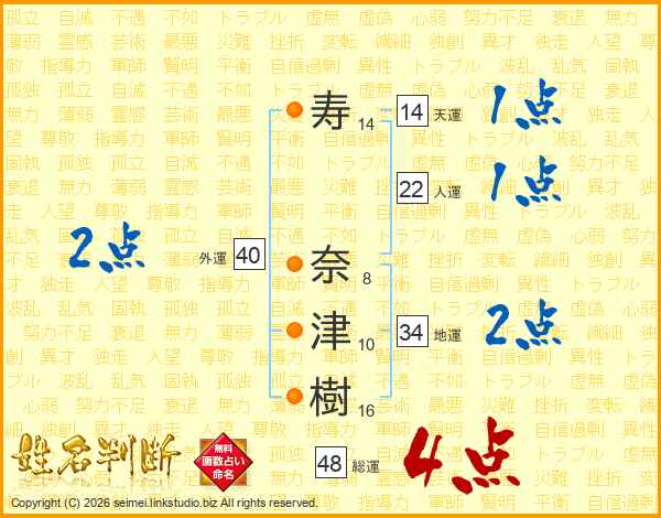 寿奈津樹さんの総運は48画の4点!