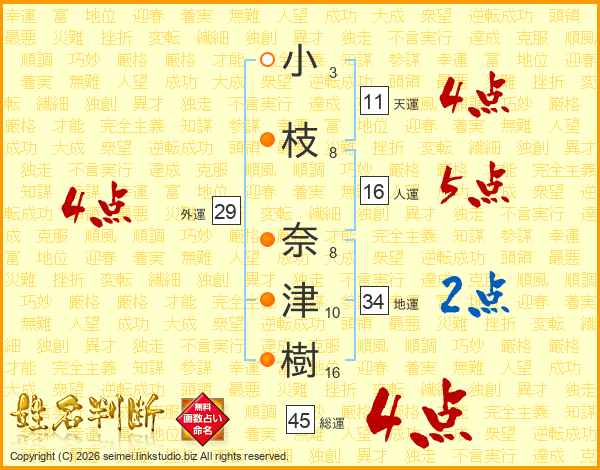 小枝奈津樹さんの総運は45画の4点!