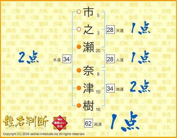 市之瀬奈津樹さんの地運は34画の2点!