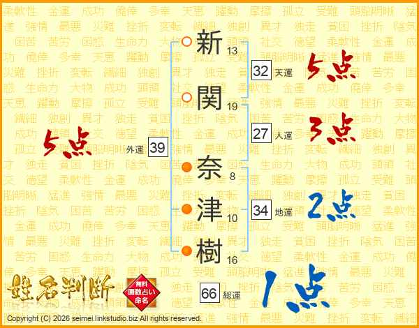 新関奈津樹さんの総運は66画の1点!