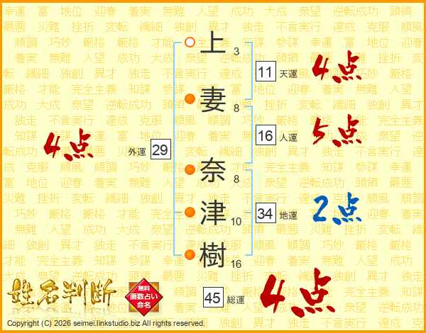 上妻奈津樹さんの総運は45画の4点!