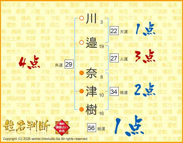 川邉奈津樹さんの総運は56画の1点!