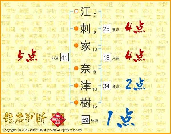 江刺家奈津樹さんの天運は25画の4点!