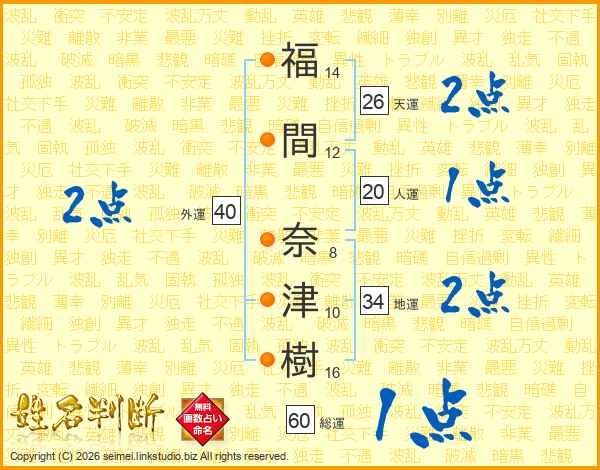 福間奈津樹さんの天運は26画の2点!