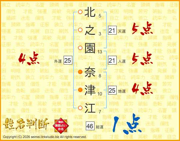 北之園奈津江さんの天運は21画の5点!