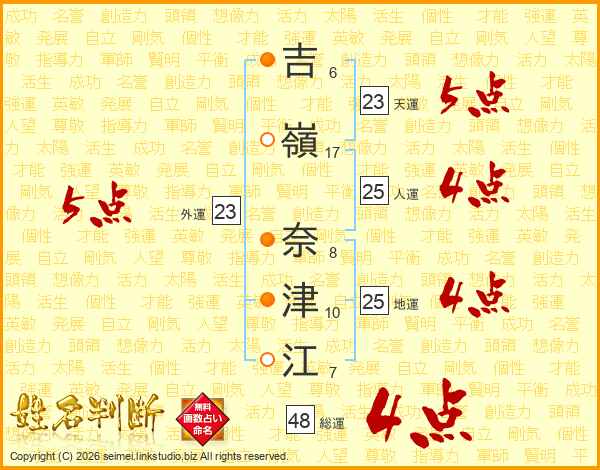 吉嶺奈津江さんの天運は23画の5点!