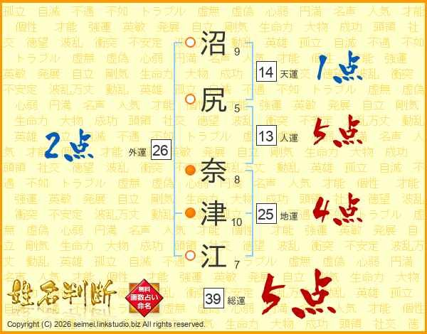 沼尻奈津江さんの総運は39画の5点!