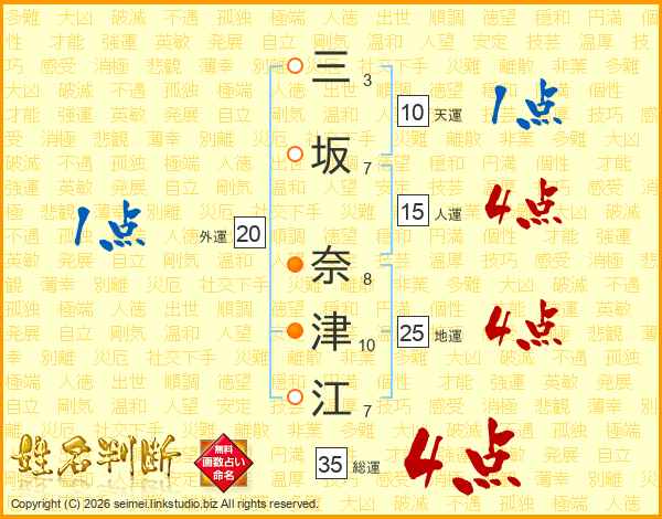 三坂奈津江さんの総運は35画の4点!