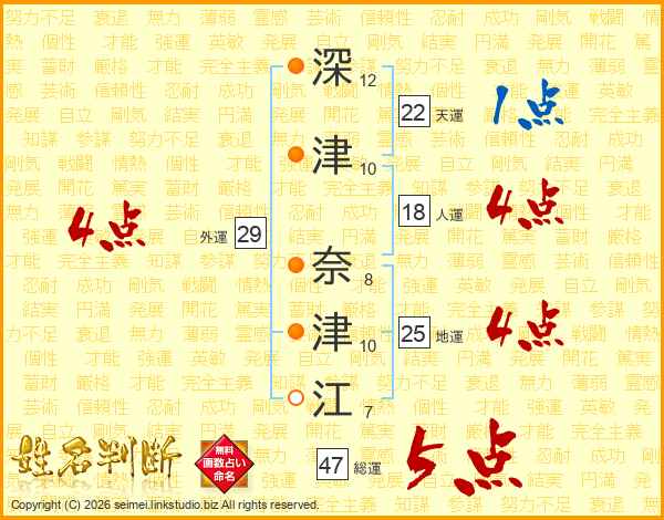 深津奈津江さんの総運は47画の5点!