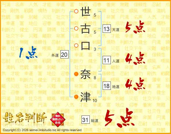 世古口奈津さんの総運は31画の5点!