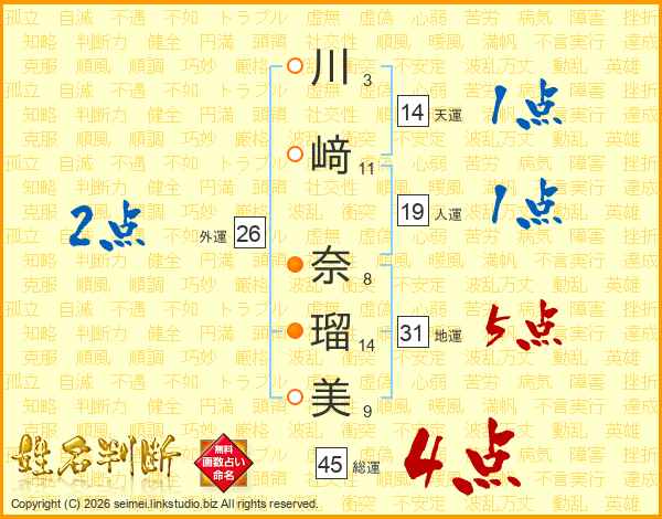 川﨑奈瑠美さんの地運は31画の5点!