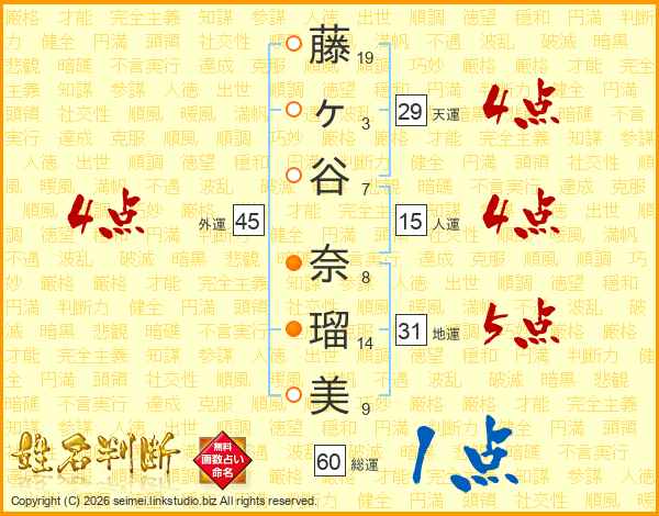 藤ヶ谷奈瑠美さんの外運は45画の4点!