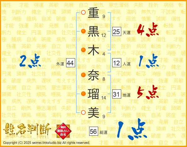 重黒木奈瑠美さんの天運は25画の4点!