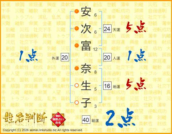 安次富奈生子さんの総運は40画の2点!