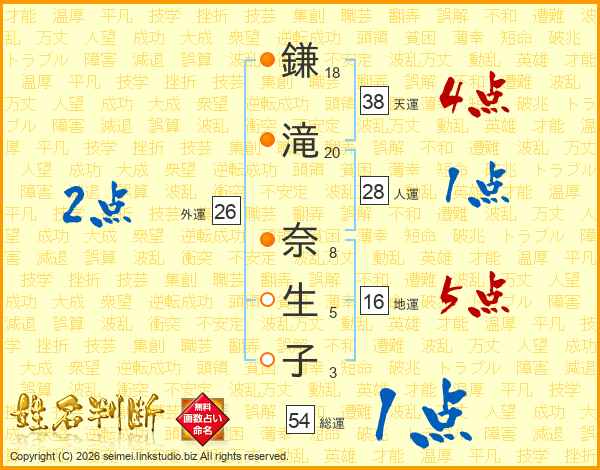 鎌滝奈生子さんの総運は54画の1点!