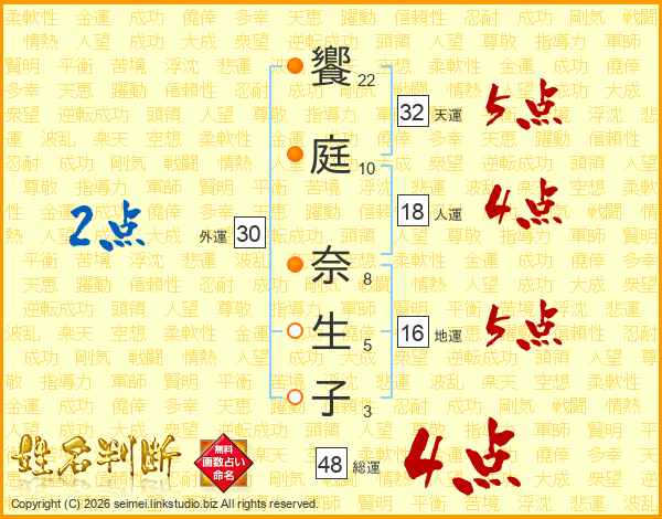 饗庭奈生子さんの天運は32画の5点!