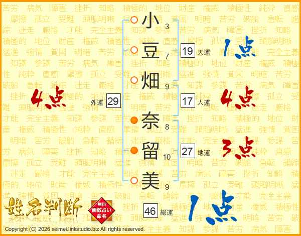 小豆畑奈留美さんの外運は29画の4点!