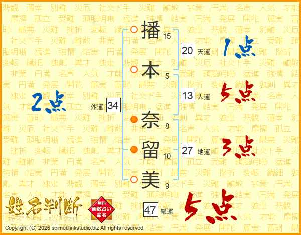 播本奈留美さんの総運は47画の5点!