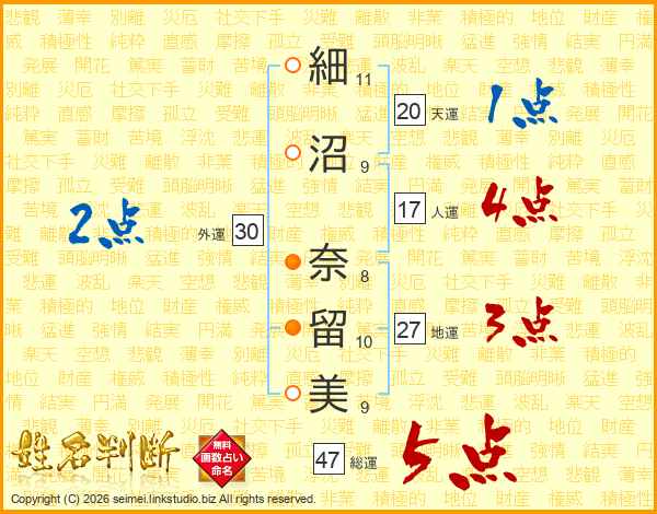 細沼奈留美さんの総運は47画の5点!