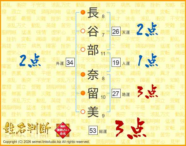 長谷部奈留美さんの天運は26画の2点!