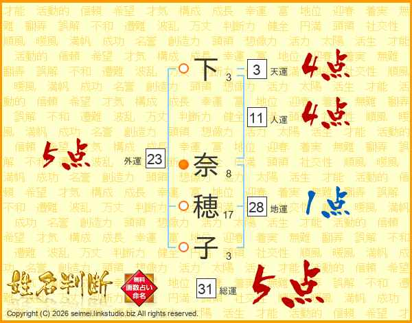 下奈穂子さんの総運は31画の5点!