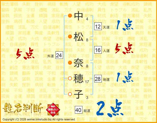 中松奈穂子さんの外運は24画の5点!