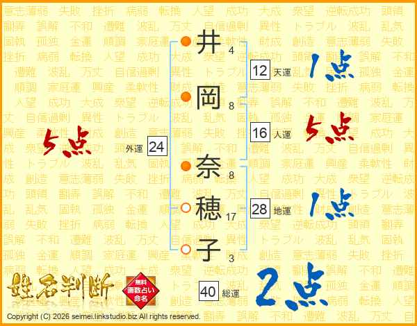 井岡奈穂子さんの外運は24画の5点!