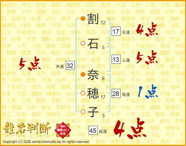 割石奈穂子さんの総運は45画の4点!