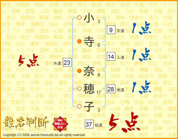 小寺奈穂子さんの総運は37画の5点!