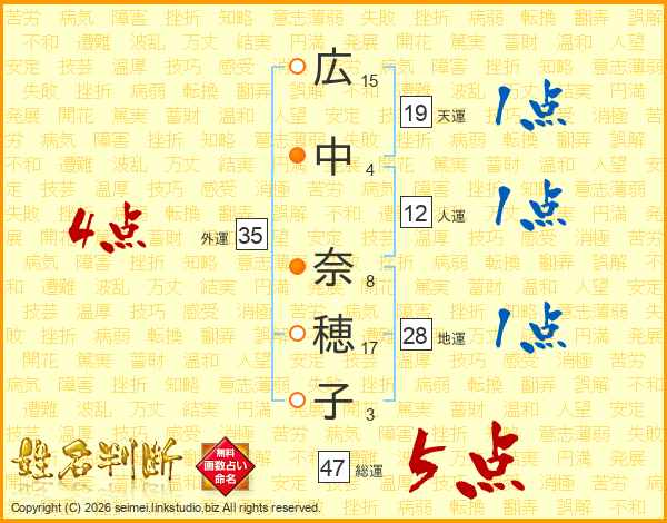 広中奈穂子さんの総運は47画の5点!