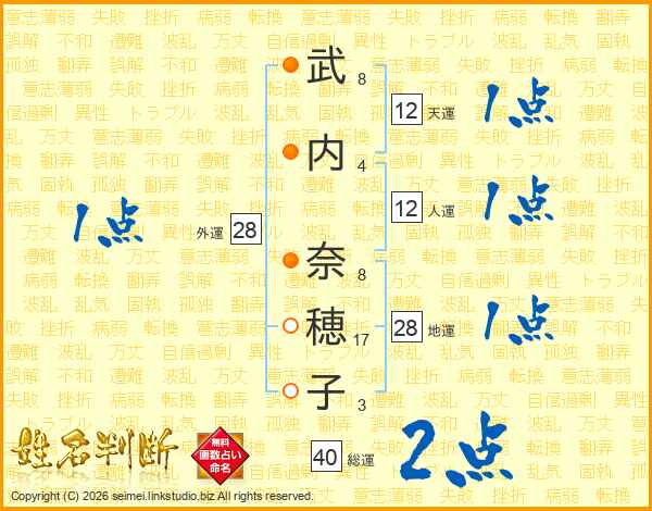 武内奈穂子さんの総運は40画の2点!