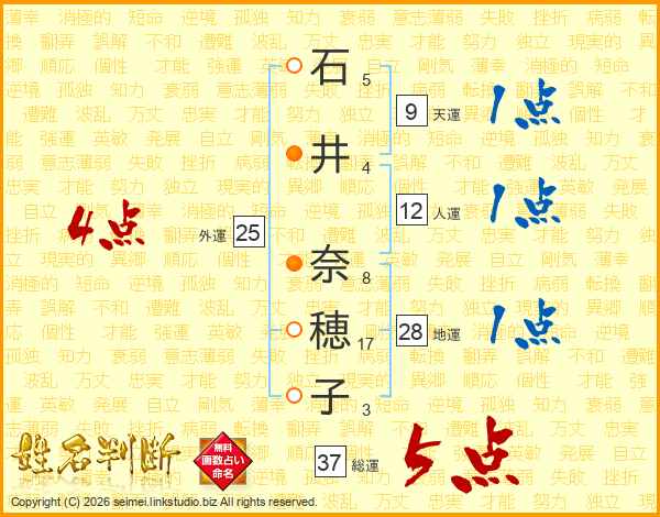 石井奈穂子さんの総運は37画の5点!