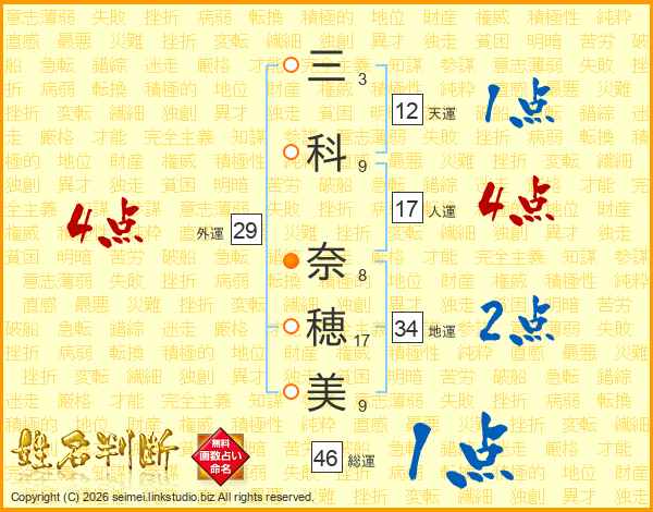 三科奈穂美さんの総運は46画の1点!