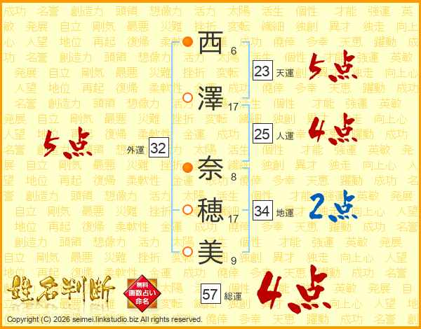 西澤奈穂美さんの外運は32画の5点!