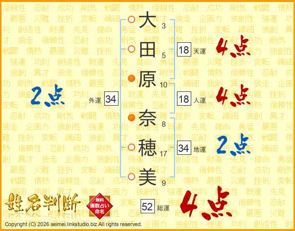 大田原奈穂美さんの総運は52画の4点!