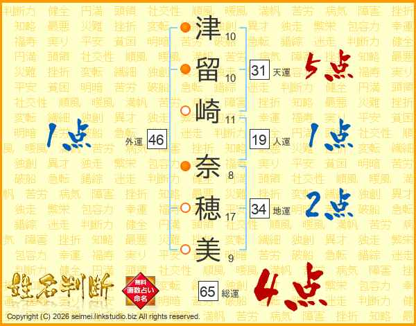津留崎奈穂美さんの総運は65画の4点!