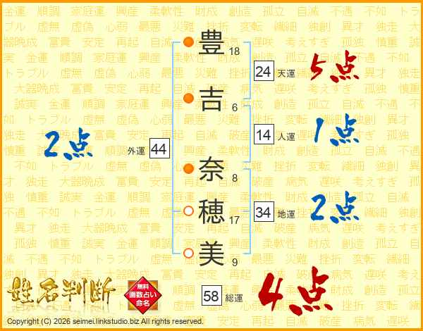 豊吉奈穂美さんの総運は58画の4点!