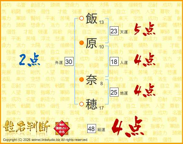 飯原奈穂さんの地運は25画の4点!