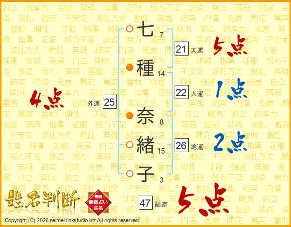七種奈緒子さんの総運は47画の5点!