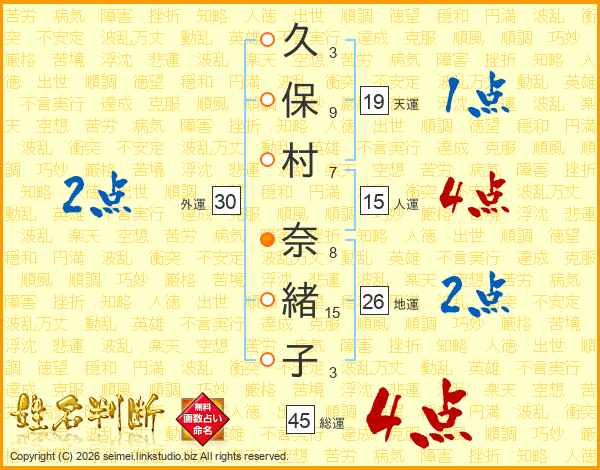 久保村奈緒子さんの総運は45画の4点!