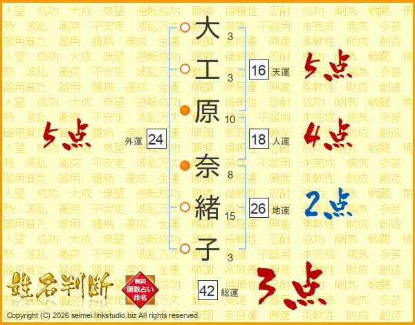 大工原奈緒子さんの外運は24画の5点!