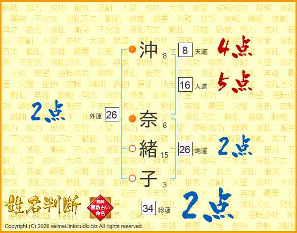 沖奈緒子さんの外運は26画の2点!